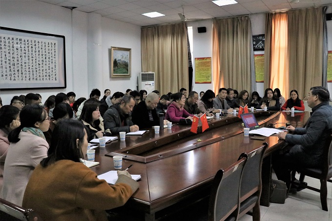 12月8日下午,党委书记韦成龙应邀在我校丹青楼1106为艺术设计学院师生作了一场题为“认真学习严格遵守党章,保持共产党员的先进性和纯洁性”的党的十九大精神学习辅导报告会。艺术设计学院全体院领导、教师党员干部参与会议,学生党员、团学干部到场聆听。会议由艺术设计学院党总支书记胡嫔主持。