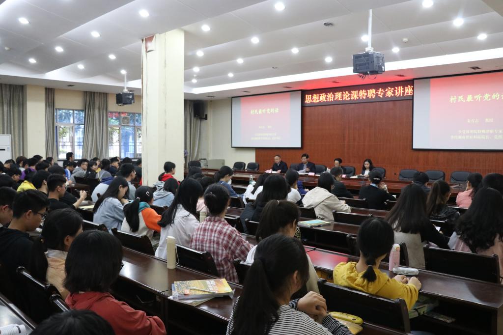 5月14日上午,曾任湖南省社科院党组书记、院长,现任长沙县开慧镇开慧村党支部第一书记的朱有志教授应邀来我校举办思想政治理论课讲座,他以“村民最听党的话”为题在图书馆一楼会议室开讲,与我校师生交流乡村发展和治理的形势和问题。党委书记刘沛林、党委副书记屈林岩参加听讲,党委宣传部、马克思主义学院相关人员与百余名学生一起聆听讲座。讲座由刘沛林主持。
