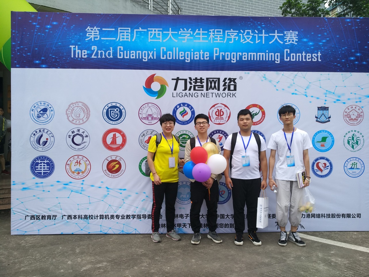 5月18日至19日,我校计算机工程与应用数学学院大学生程序设计竞赛代表队受邀参加2019年广西壮族自治区大学生程序设计竞赛,获得喜人成绩。由魏歌老师指导的秦涛、唐明珠、王政3名同学组成的队伍荣获金奖,王向军老师指导的周鹏程、张正海、杨京3名同学组成的队伍荣获银奖,黄娟老师指导的唐佳敏、胡静、刘洁3名同学组成的队伍荣获铜奖和最佳女生队称号。
