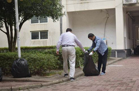 观影后,全体党员来到理工楼分组开展志愿打扫活动,对各自义务劳动的责任区进行清理打扫。党员教师们干劲十足,有的人擦拭玻璃,有的扫除灰尘,有的人擦拭栏杆,有的人清理死角的垃圾。在大家的共同努力下,理工楼的卫生环境焕然一新。