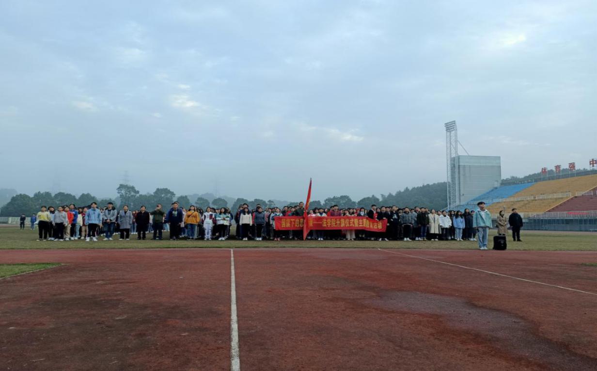 10月28日清晨,伴着温暖的晨曦,法学院500多学子齐聚天健体育场举行了升旗仪式。激发学生爱国爱家、爱校荣校情。参加升旗仪式的有长沙学院原党委副书记、副院长,现关工委副主任李云龙,法学院党总支书记彭向阳、副书记肖燕芳,团总支书记傅诗贻,辅导员裴昊铭以及法学院全体同学。