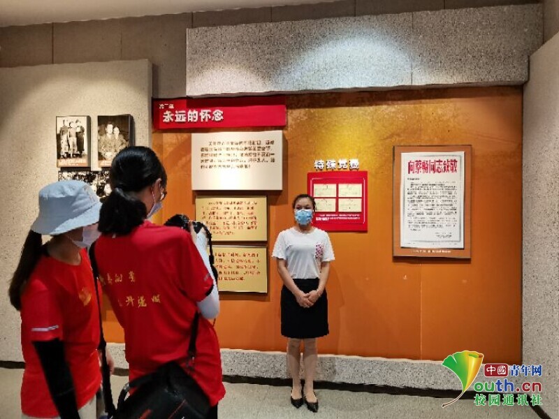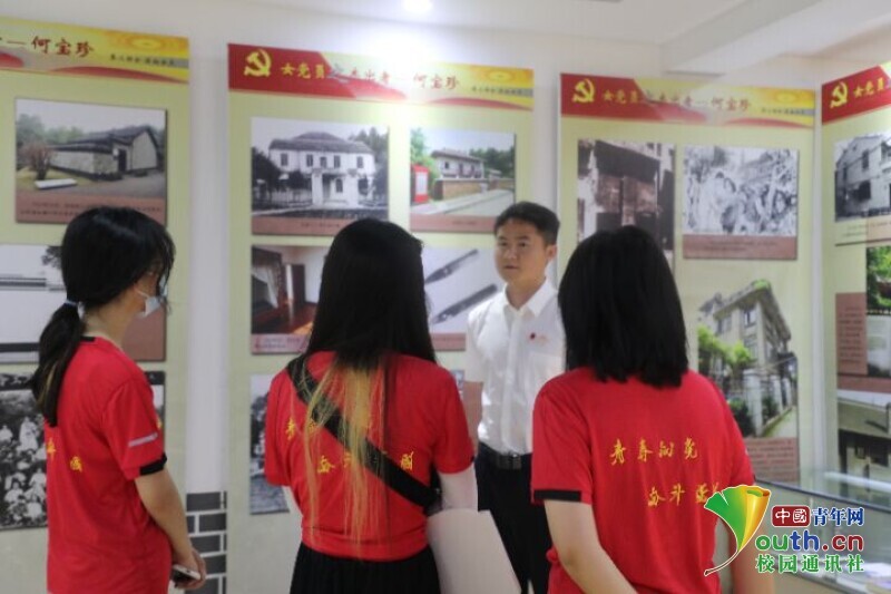 图为语焕星城暑期实践团队成员在何宝珍纪念馆聆听讲解员讲解的场景 中国青年网通讯员 蒲原佳兰 摄