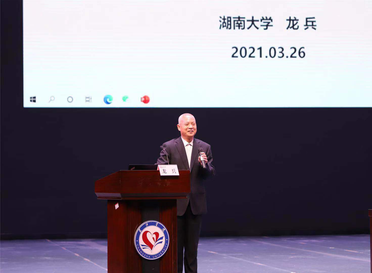 龙兵是全国高校思政课教学能手、全国模范教师。2020年9月,习近平总书记在湖南大学考察时,曾到龙兵老师的课堂,为龙兵老师的“移动”思政课点赞。报告会上,龙兵从利用历史资源、让思政课堂“活”起来,走向田间地头、让思政课堂“实”起来,注重人文关怀、让思政课堂“亲”起来三个方面阐述了怎么开展好思政课教学,打造富有亲和力的“移动”思政课堂的方法。他的报告案例丰富、深入浅出、生动活泼,让人耳目一新。“原来思政课还可以这么上!”观众席中的一名老师感叹道。