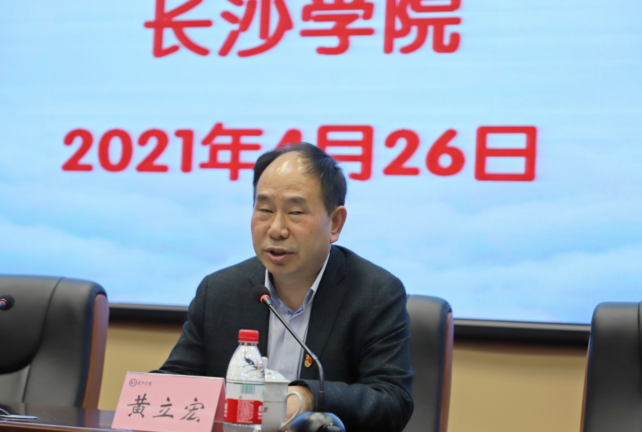 三湘都市报4月26日讯(通讯员 记者 杨斯涵 黄京)“在党的历史上,湖湘儿女英勇奉献,湖南这篇热土被称为‘十步之内必有芳草’……”今日下午,党史学习教育省委宣讲团成员、省委宣传部正处长级干部、一级调研员柳行教授受邀到长沙学院开展党史学习教育专题宣讲。他围绕中国共产党百年历史的主题、主线和主流、本质,从深化认识和掌握奋进新征程的历史主动视角,结合多年从事党的创新理论和省情研究的经历经验,为广大师生作了一场全面深入而又具体生动的报告。报告会由长沙学院校长黄立宏主持。