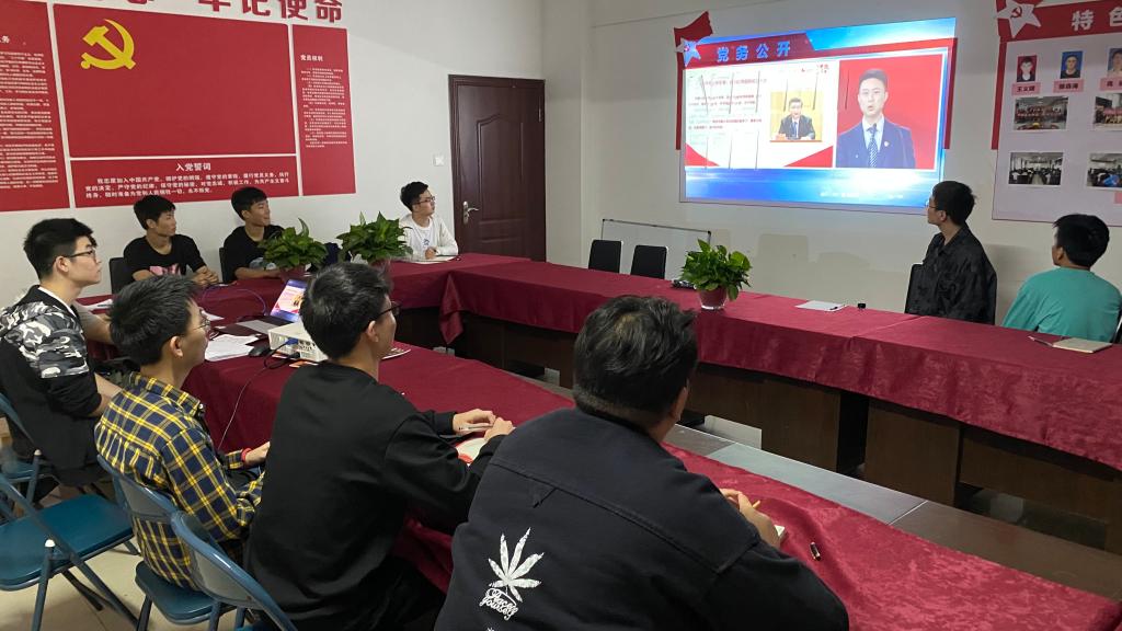 土木工程学院组织发展对象在园区党建活动室集中观看党史学习教育节目