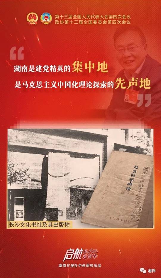 “湖南是建党精英的集中地,是马克思主义中国化理论探索的先声地。”陈晋介绍,1918年毛泽东创立了新民学会,许多的成员都成为了我们党的早期党员。在中国共产党正式成立之前,全国只有58个党员,湖南籍的人就占了20个。第一个提出中国共产党名称、第一个提出要正式建立中国共产党的人,就是是湖南人蔡和森。中国共产党成立之后,毛泽东从上海回到湖南立刻着手建立地方组织,中共湘区委是最早的中共省级组织。