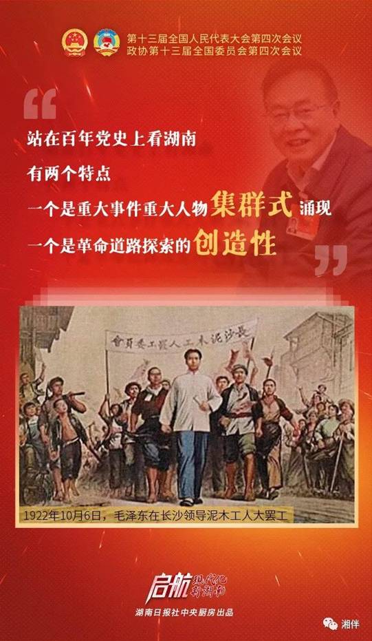“站在百年党史上看湖南,有两个特点,一个是重大事件重大人物集群式涌现,一个是在革命道路探索上具有创造性。”在党史专家陈晋看来,湖南这片红色热土,在百年党史上的分量举足轻重。说起湖南百年党史中的“湖南篇章”,陈晋如数家珍。