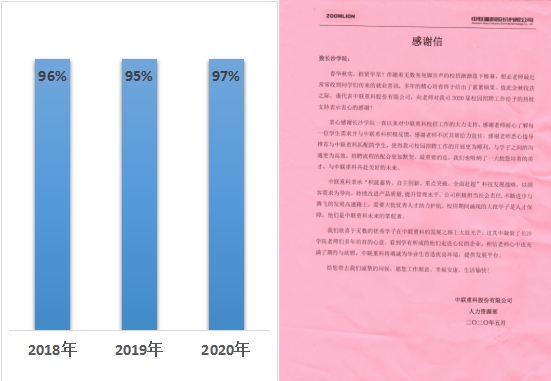 学校注重毕业生职业道德与就业、择业观念教育,与毕业生就业基地、就业企业(单位)保持着良好的合作关系。2018年、2019年、2020年用人单位对学校人才培养工作总体满意度分别为96%、95%、97%。