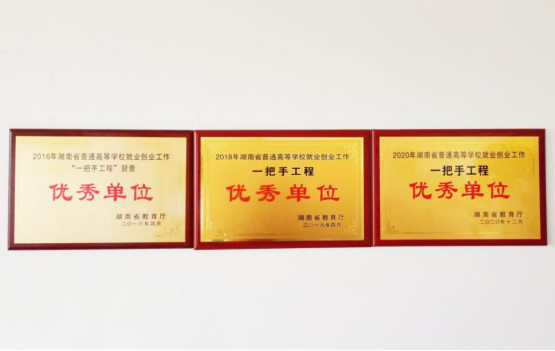 从2016年至2020年,连续三届荣获湖南省普通高校毕业生就业创业工作“一把手工程”优秀单位称号。