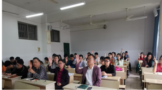 5月18日下午,法学院党总支在涵虚楼1403教室召开全体师生党员大会,选举出席中共长沙学院委员会第三次代表大会的代表。会议由党总支书记彭向阳主持。