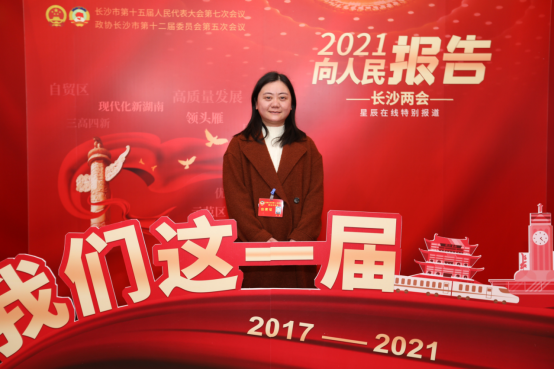 (江艳在政协长沙市第十二届委员会第五次会议上留影)