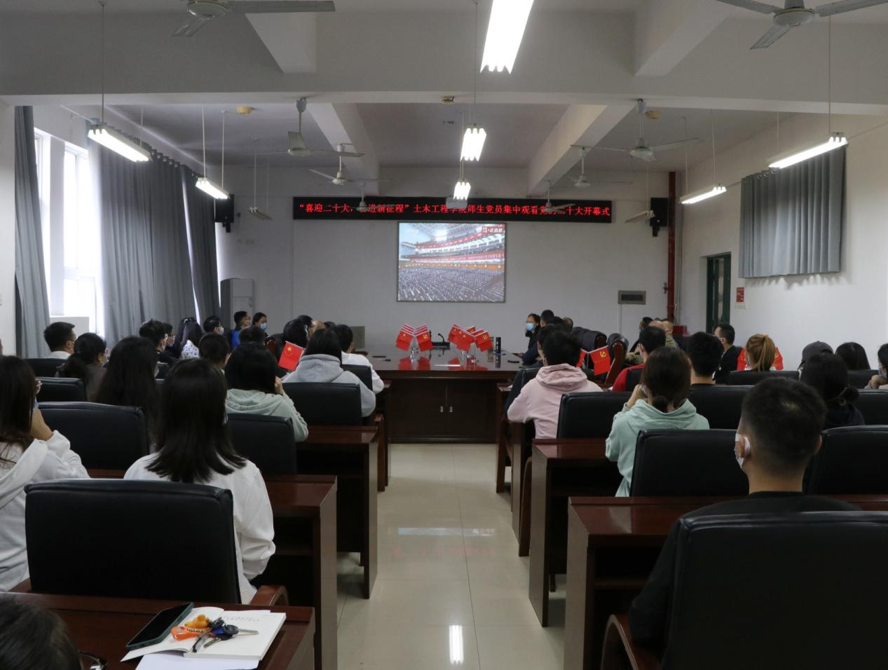10月16日,土木工程学院组织师生党员在理工楼A303集中收看党的二十大开幕会。