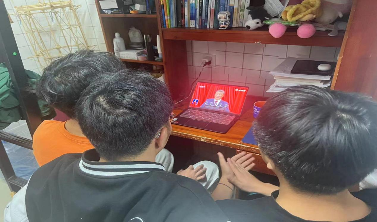 在学生宿舍,“党的二十大”、“总书记报告”等成为同学们讨论的高频词,20级建筑01班何书海在学生宿舍开起了“小会”,“给这十年的变化发展打call,感觉到十年的变化可以说是日新月异”,“总书记的报告给了我们更大的激情和动力,跟党走,跟着总书记走,我们就一定能谱写出新时代中国特色社会主义更加绚丽的华章。”