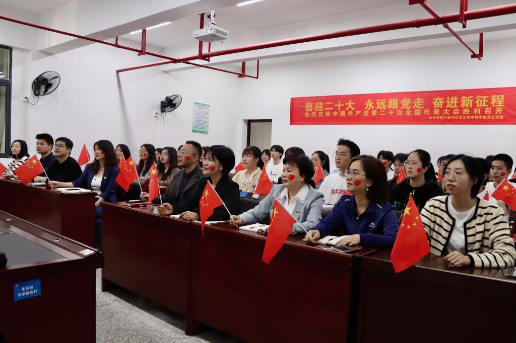 生物与化学工程学院组织全体班子成员、辅导员、全体学生党员,在力行楼S419集中收看大会盛况。学院其他党员干部、入党积极分子、团学干部等通过电视、网络自行收听收看。会后,师生党员们对习近平总书记所作的大会报告的内容及十年来改革发展的巨大成就纷纷热议。