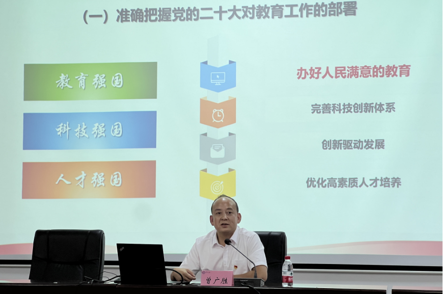 曾广胜围绕党的二十大报告,从塑造发展新动能新优势:发挥教育、科技、人才的系统集成功能;认识发展新任务新要求:加快建设教育强国,办好人民满意的教育;实现发展新目标新跨越:建成特色鲜明的应用型地方大学三个方面进行了深刻阐释。