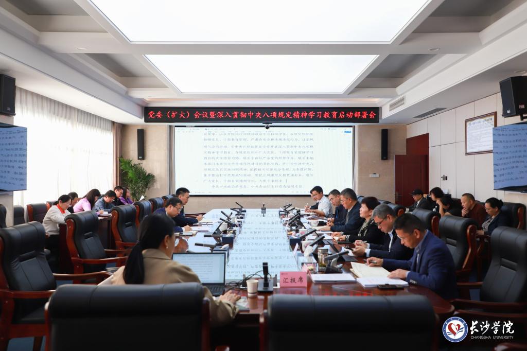会议传达学习了习近平总书记关于加强党的作风建设的重要论述、中央党的建设工作领导小组有关会议和省委有关部署会议精神,审议了《中共长沙学院委员会关于开展深入贯彻中央八项规定精神学习教育的实施方案》。