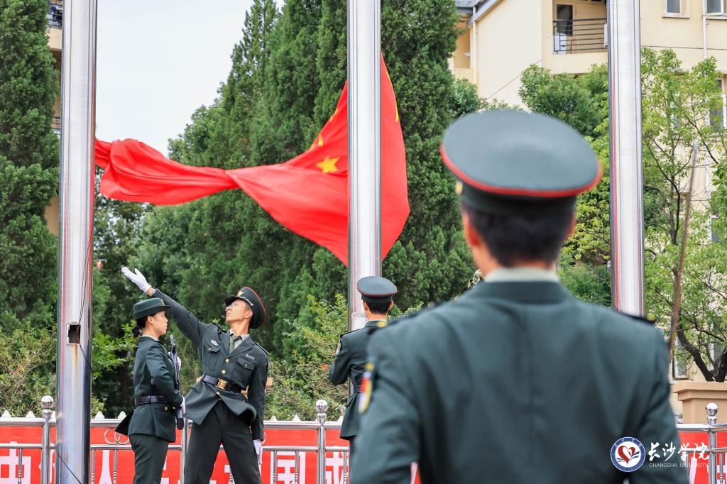 迎着晨光,国旗护卫队迈着坚定有力的步伐,昂首挺胸步入升旗台。全场师生整装列队、庄严肃立、共唱国歌,向国旗行注目礼。鲜艳的五星红旗在雄壮的国歌声中冉冉升起。