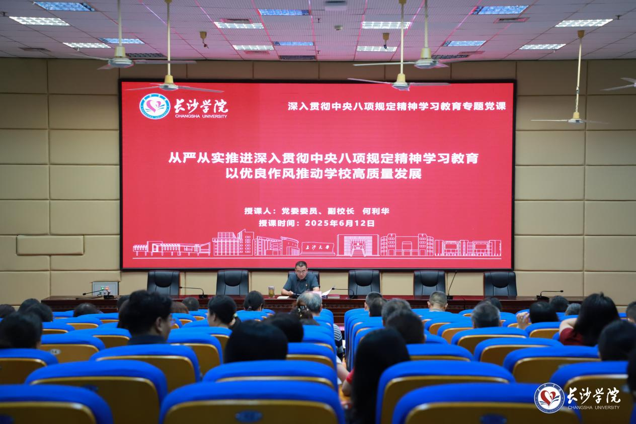 6月12日,党委委员、副校长何利华在致远楼学术报告厅讲授深入贯彻中央八项规定精神学习教育专题党课。