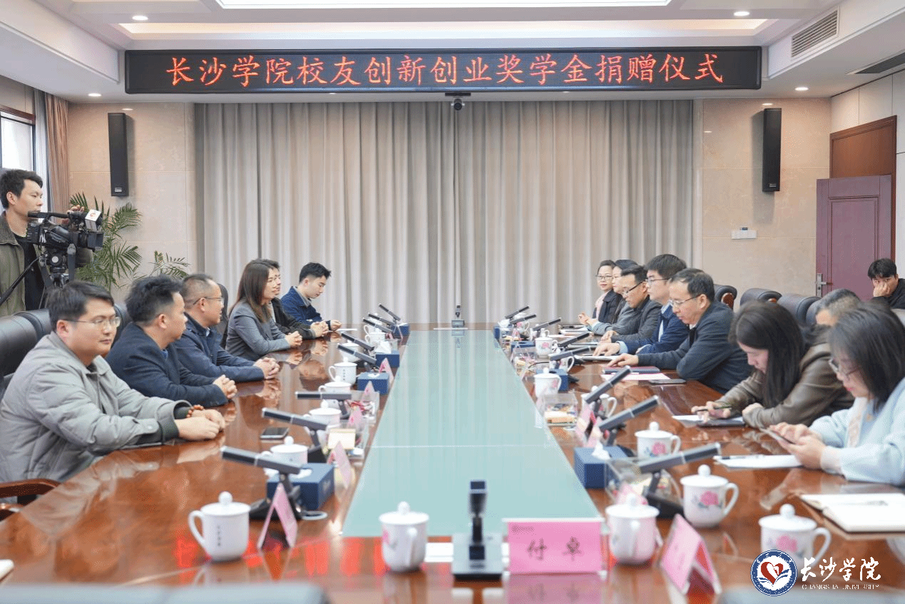3月25日,长沙学院校友创新创业奖学金捐赠仪式在长盛楼4001会议室举行。我校多位校友及学生创业团队共同捐赠100万元设立“创新创业奖学金”,专项扶持我校学生实际运营的创新创业项目。校长陈赤平出席并讲话,党委副书记何利华,党委委员、副校长莫雄,长沙校友会会长周宇、副会长胡胜等出席捐赠仪式。