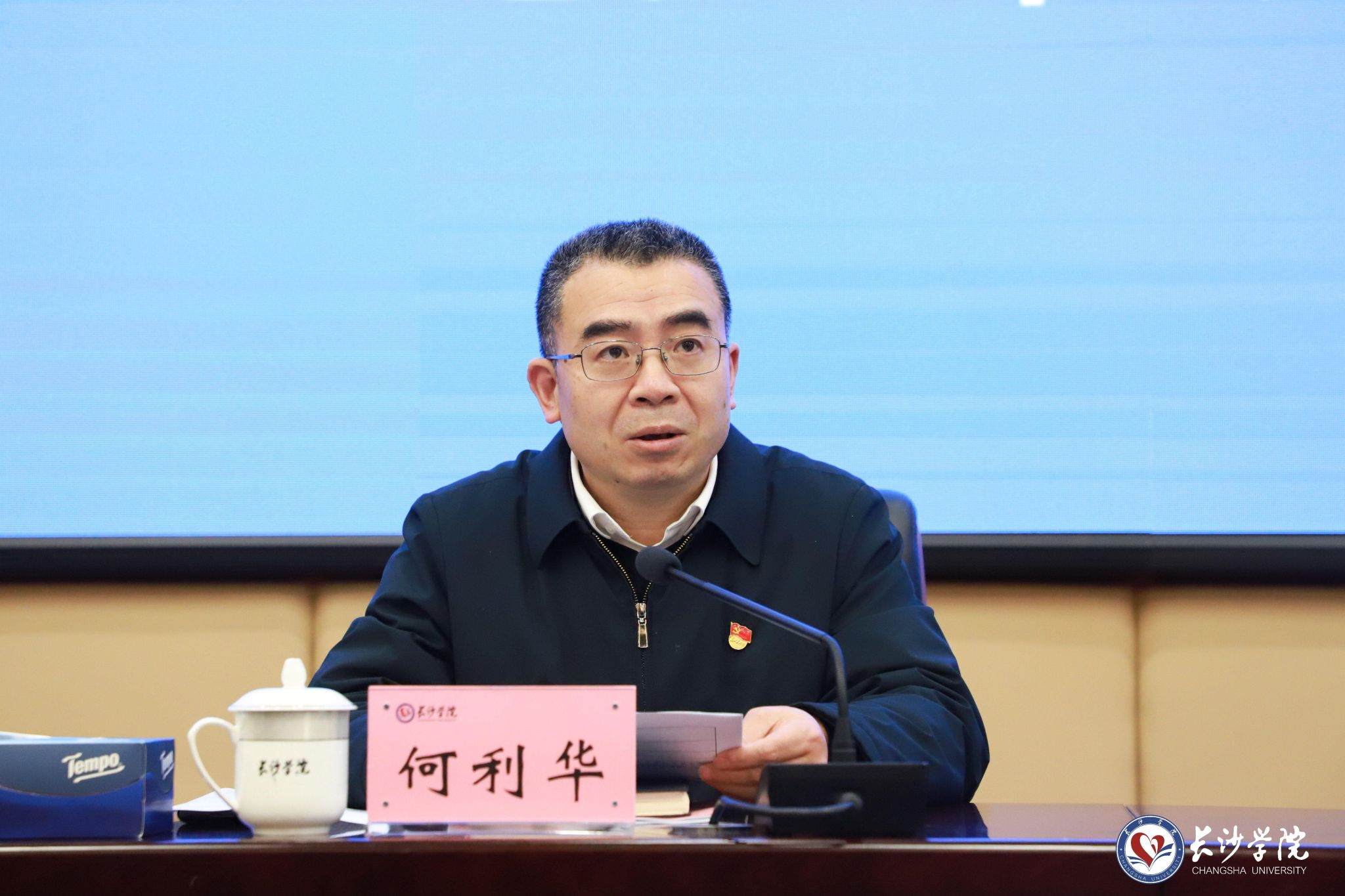 (党委副书记何利华主持会议)