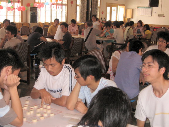 5月27日上午,作为第一届校园文化艺术节系列活动之一的首届棋奕大比拼决赛在多功能厅举行。本次活动由校团委主办,电子与通信工程系承办,旨在继承和发扬中国传统文化,丰富同学们的课余文化生活。比赛分中国象棋、五子棋、跳棋三种棋类,16名优胜者从512名参赛选手中脱颖而出,进入决赛争夺三棋类的冠军。最终,05电气2班的吴雷获得中国象棋冠军,05机本8班的梁军为五子棋冠军,05通信3班的彭章为跳棋冠军,其他名次的奖项也各归其主。活动取得圆满成功。