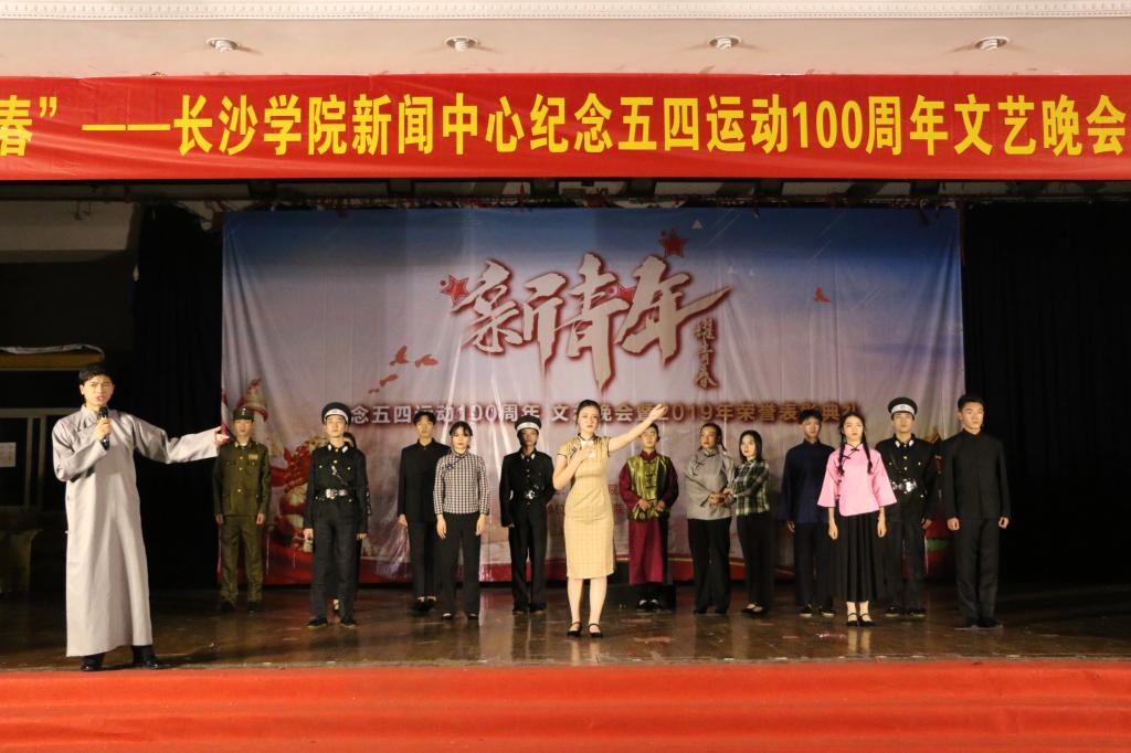 谷建春以29根拐杖的故事导入,深情寄语新闻中心全体成员,希望同学们以优秀记者谭里和为榜样,“铁肩担道义,妙笔著文章”,传承百年五四精神,做一名有作为、有担当的学生记者。晚会在校艺术团舞蹈队带来的开场舞《舞动青春》中拉开序幕。青果剧场带来话剧《向警予之国家情》致敬革命英雄,表达了新时代新青年的担当与思考。新闻中心视音部带来的朗诵《燃烧吧!青年》,新闻中心编辑部与摄影部联袂演出的歌曲串烧《追梦的你我》展示了学生记者们多才多艺的一面。舞蹈串烧《我们的时代》、相声《礼仪漫谈》等精彩节目赢得了现场观众的阵阵掌声和欢呼声。
