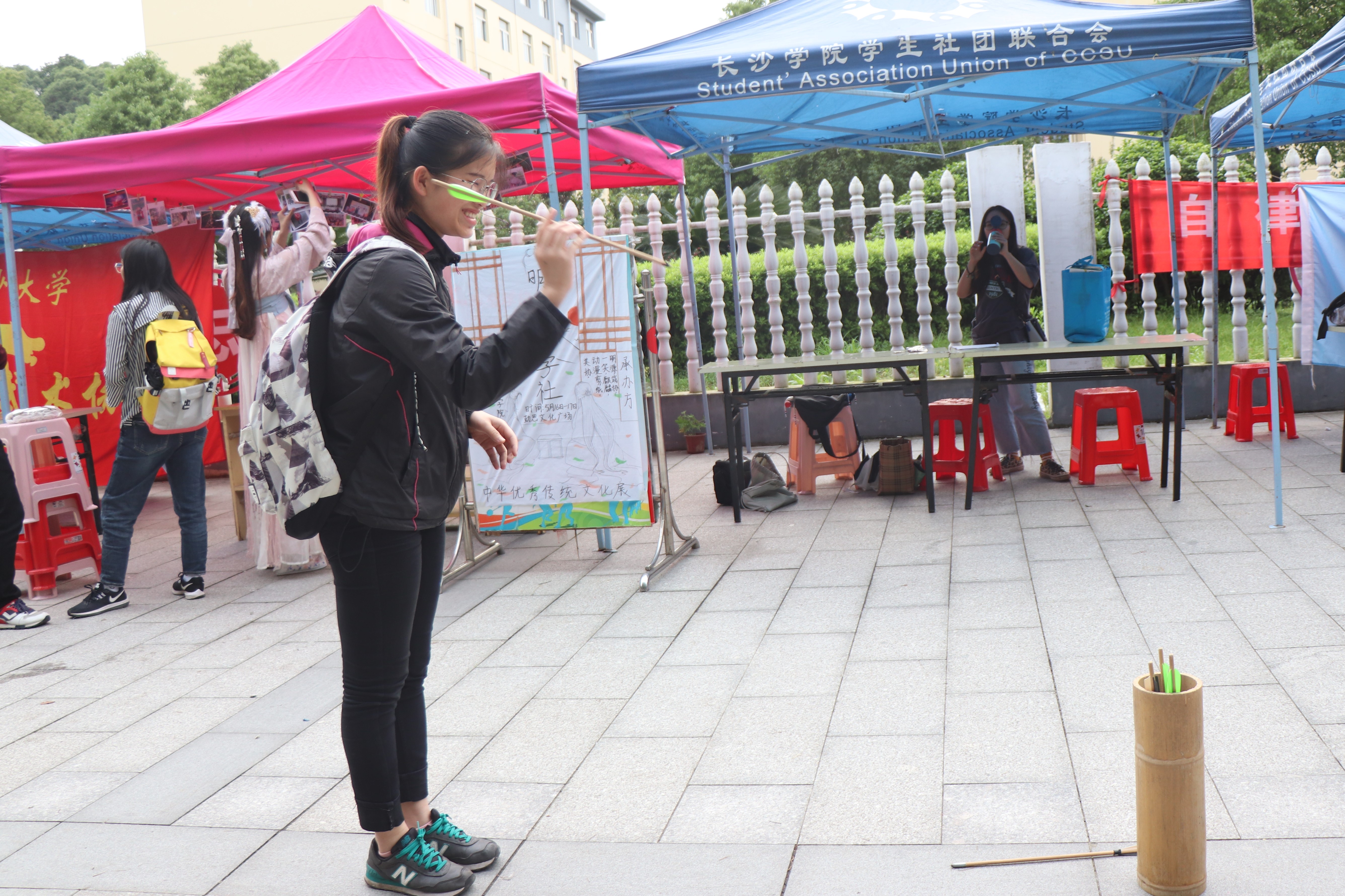 现场同学参与投壶游戏