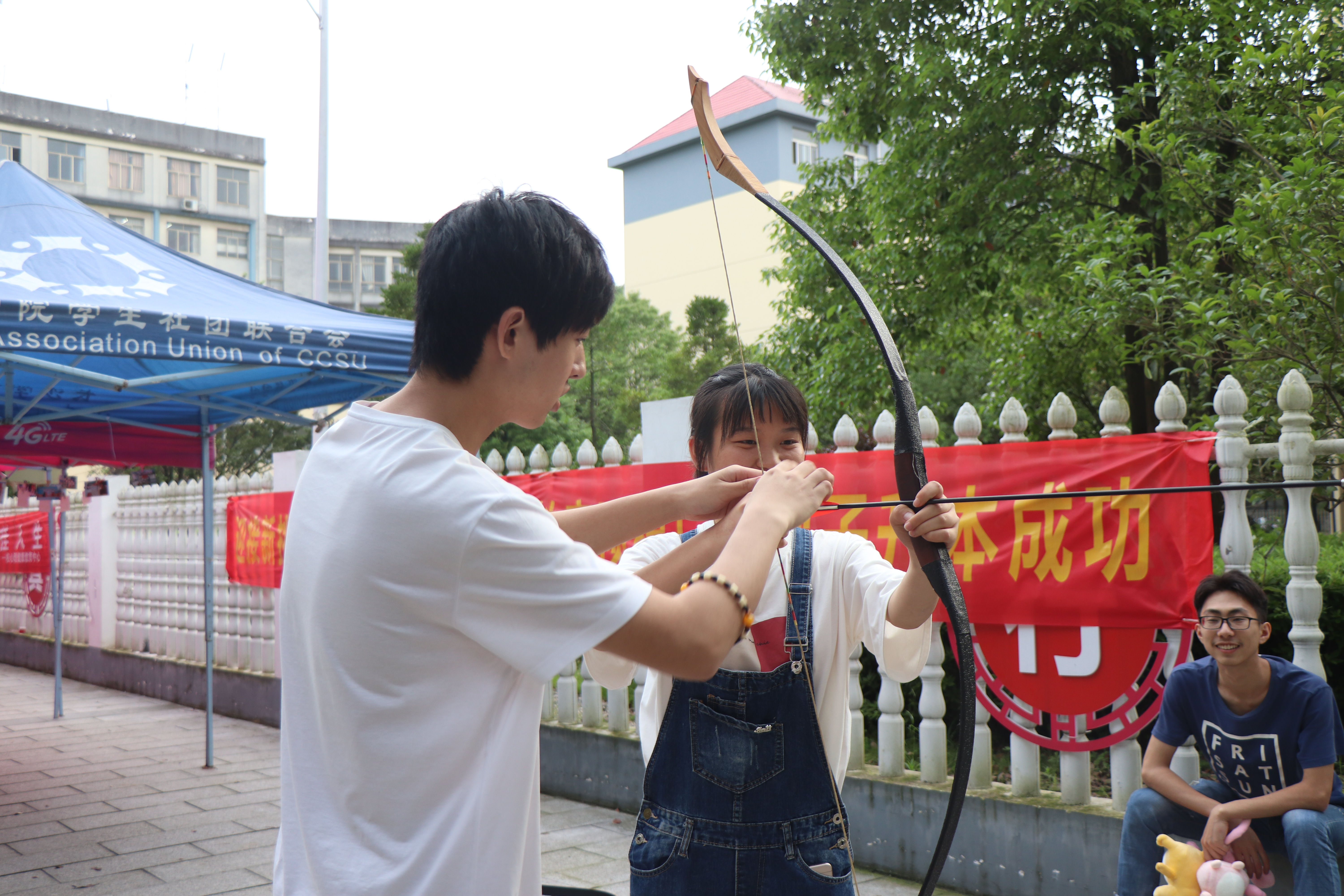 现场同学进行射箭项目体验