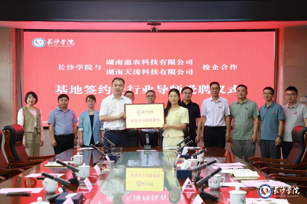 5月15日,我校数学学院与湖南惠农科技有限公司、湖南天涛科技有限公司在长盛楼4001会议室举行就业实习实践基地合作协议签署暨授牌仪式,并正式聘任5位来自惠农科技、天涛科技的企业高管担任行业导师,开启校企协同育人新篇章。党委委员、副校长阳王东,湖南惠农科技有限公司总裁申斌、副总裁邓武杰,湖南天涛科技有限公司王宁等出席活动。