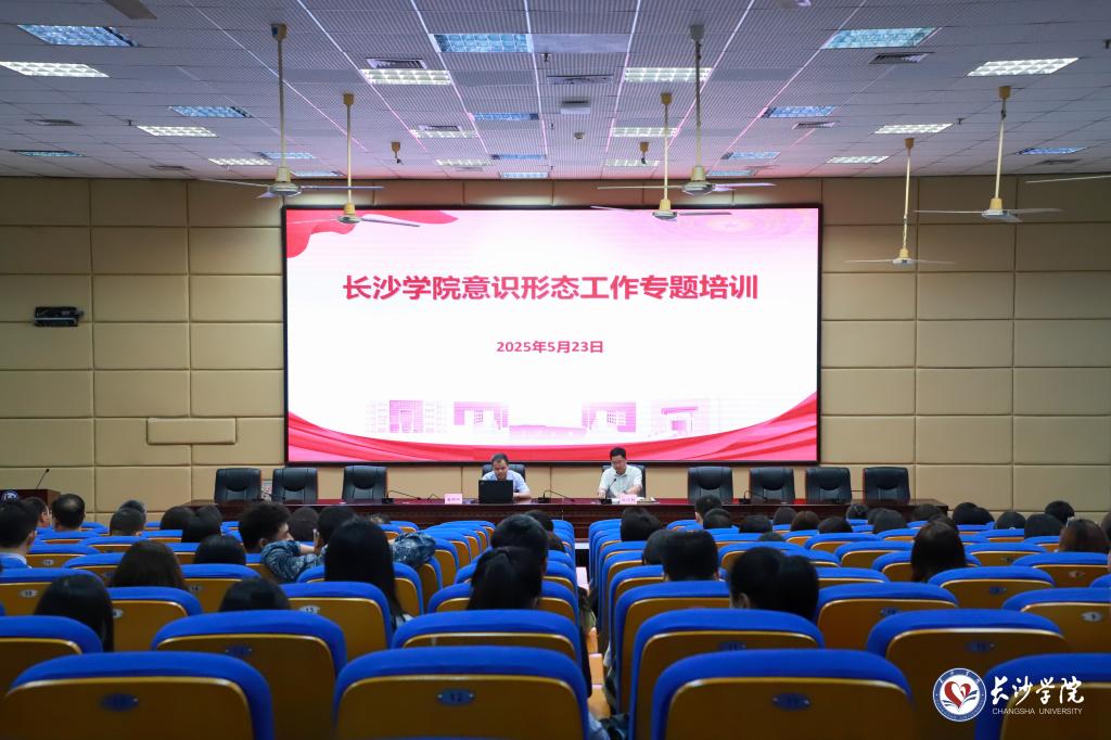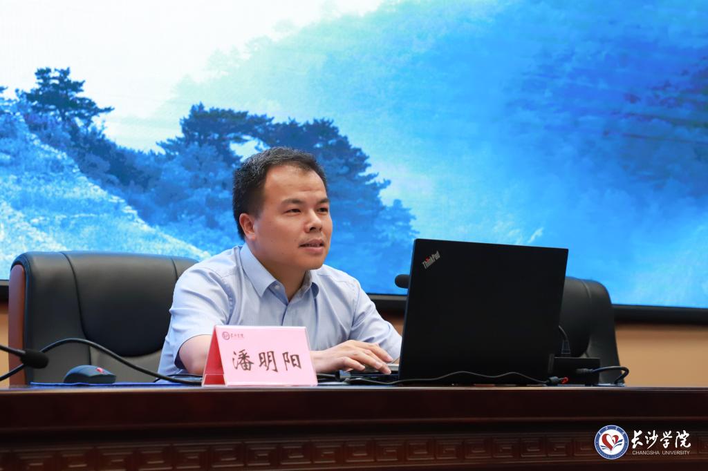 5月23日下午,长沙市委宣传部理论处处长潘明阳应邀到我校致远楼学术报告厅作意识形态工作专题培训。讲座由党委宣传部常务副部长徐远超主持。