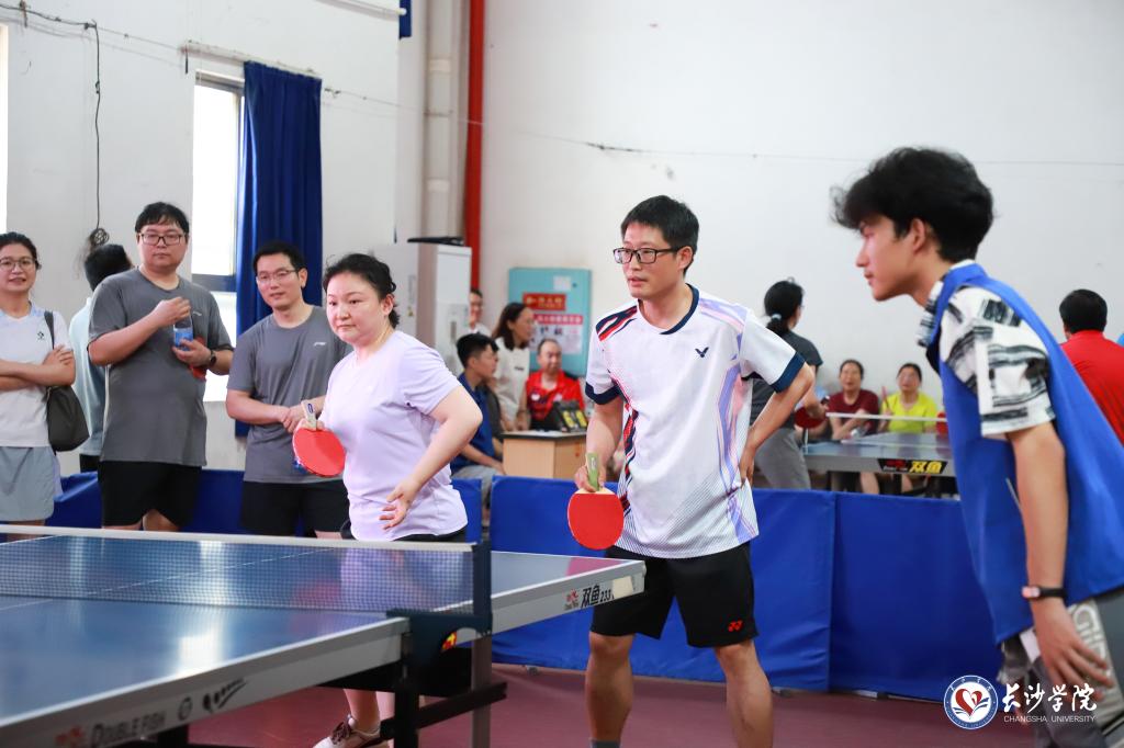 6月7日至8日,由校工会主办、体育学院承办的长沙学院第七届教职工乒乓球混合团体赛在永康体育馆举行。21支教职工代表队、300余名教职工运动员齐聚一堂、挥拍逐梦,以昂扬的精气神展现了蓬勃向上、团结协作的新风采。党委委员、副校长何利华出席开幕式并宣布比赛开幕。