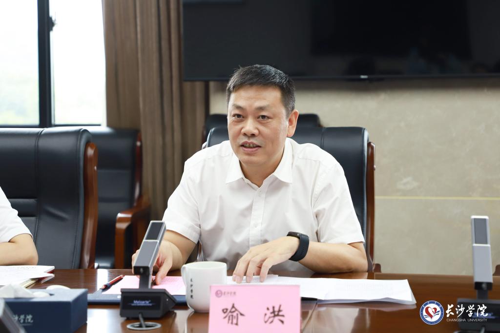 喻洪充分肯定了我校的办学成绩,希望在党建工作、年轻干部人才培养使用等方面与长沙学院进行深入交流合作,通过先进经验、理念共享,共同助力高等教育高质量发展。