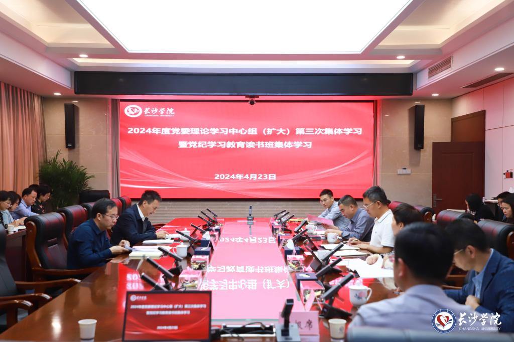 4月23日上午,我校党委理论学习中心组(扩大)开展2024年第三次集体学习暨党纪学习教育读书班集体学习。集体学习采取会前自学、领导领读、讨论交流的形式,原原本本、逐章逐条学习了《中国共产党纪律处分条例》,深研细读习近平总书记关于党的纪律建设的重要论述及关于党纪学习教育的重要讲话和指示精神。大家一致表示,要把《条例》学习融入日常、抓在经常,切实做到内化于心、外化于行,更好发挥带学促学作用。全体在校校领导,党群职能部门主要负责人,各二级党组织书记参加学习。